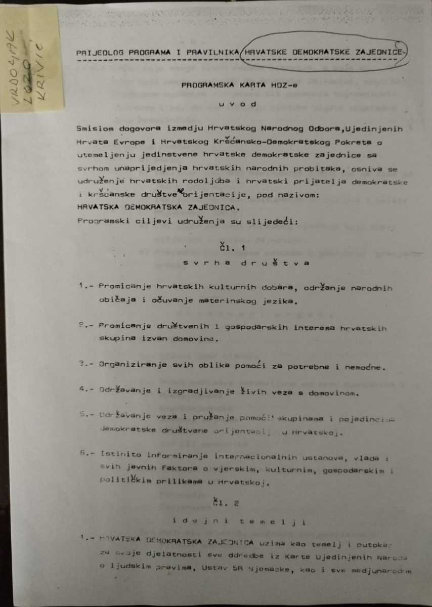 Konačno se utvrđuje kako HDZ vidi mjesto buduće Hrvatske u političkoj zajednici europskih ravnopravnih naroda i država. Godine 1985. formirana organizacija HDZ postala je meta zloglasne UDB-e iako se novoosnovana nije uklapala u narativ koji je UDB-a sustavno i suptilno pripisivala hrvatskoj emigraciji: “fašistička, ustaška, ekstremistička, teroristička”.