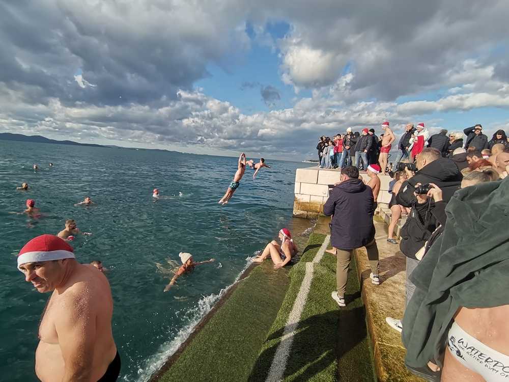 Novogodišnje kupanje, koje se u Zadru održava već deset godina, okupilo je nekoliko desetaka najhrabrijih sudionika, među kojima su bili Zadrani, ali i zadarski turisti.