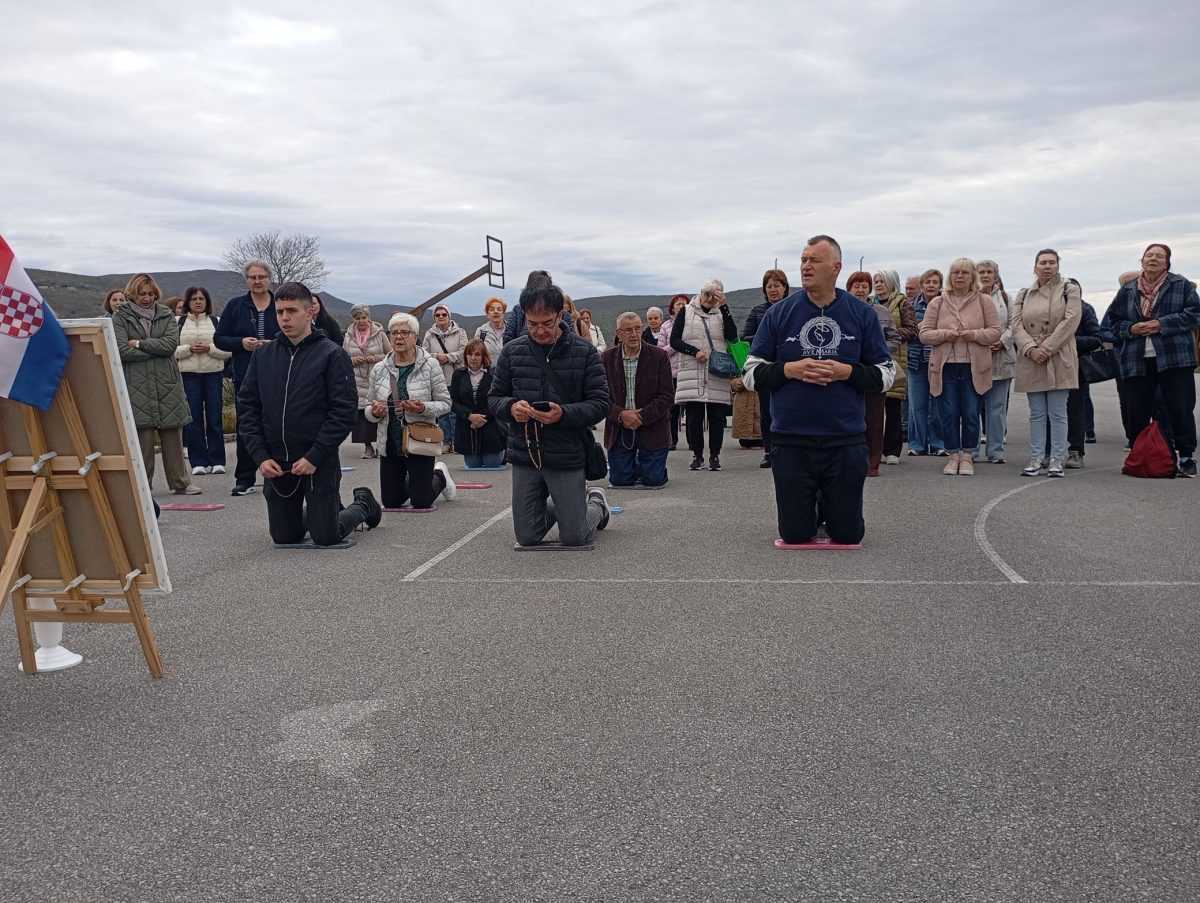 Program je započeo molitvom krunice na igralištu kraj srušene stare svećeničke kuće, mjestu koje nosi snažnu simboliku za ovaj kraj. Okupljeni vjernici, mnogi od njih klečeći na otvorenom prostoru, u sabranosti su uzdizali svoje molitve Nebeskoj Majci.
